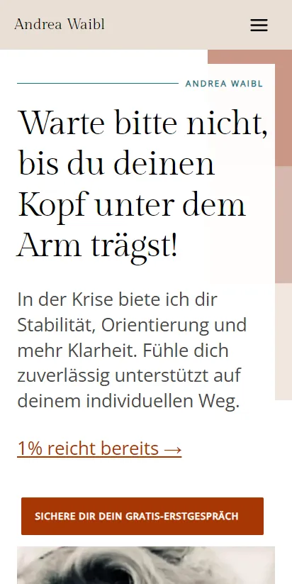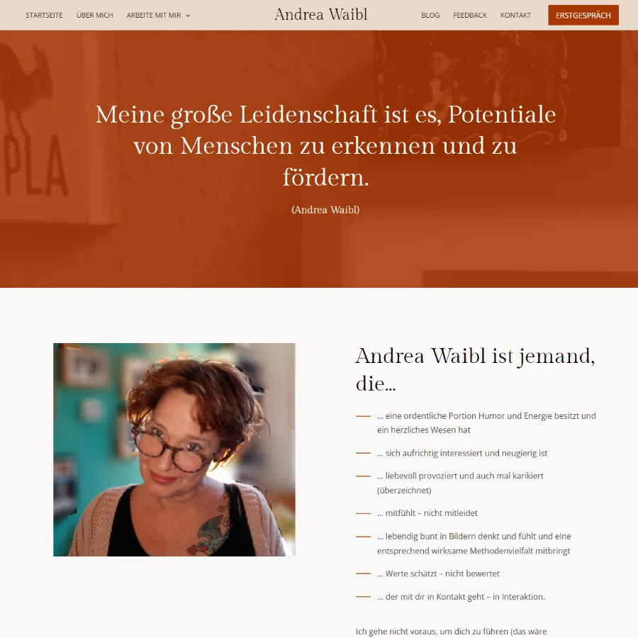 Andrea hatte noch keine Website und wollte endlich auch online sein. Es gab keine professionellen Fotos, keine Inhalte und keinen roten Faden.