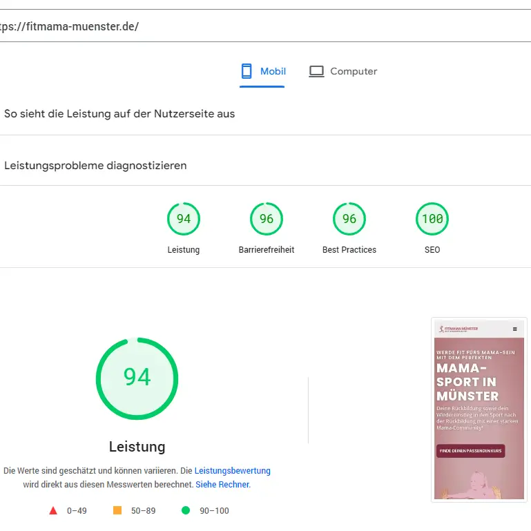 Wartung & Support: Mit einem Wartungsvertrag für die WordPress-Seite ist fitmama-muenster.de technisch abgesichert und zuverlässig erreichbar. Das sorgt für extra Vertrauen und reibungslose Kursbuchungen.