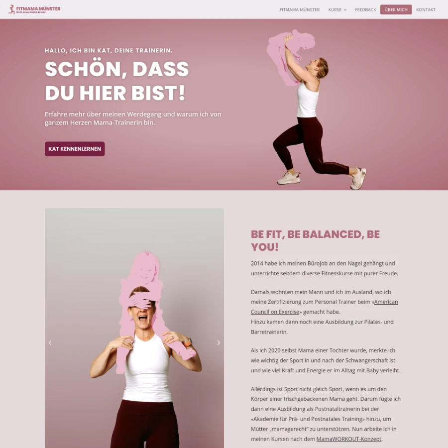 Hochwertiges und individuelles Webdesign: Die Website braucht ein Design, das Mütter in ihrer Rückbildungsphase direkt anspricht und Katharinas Kompetenz als Trainerin deutlich hervorhebt.